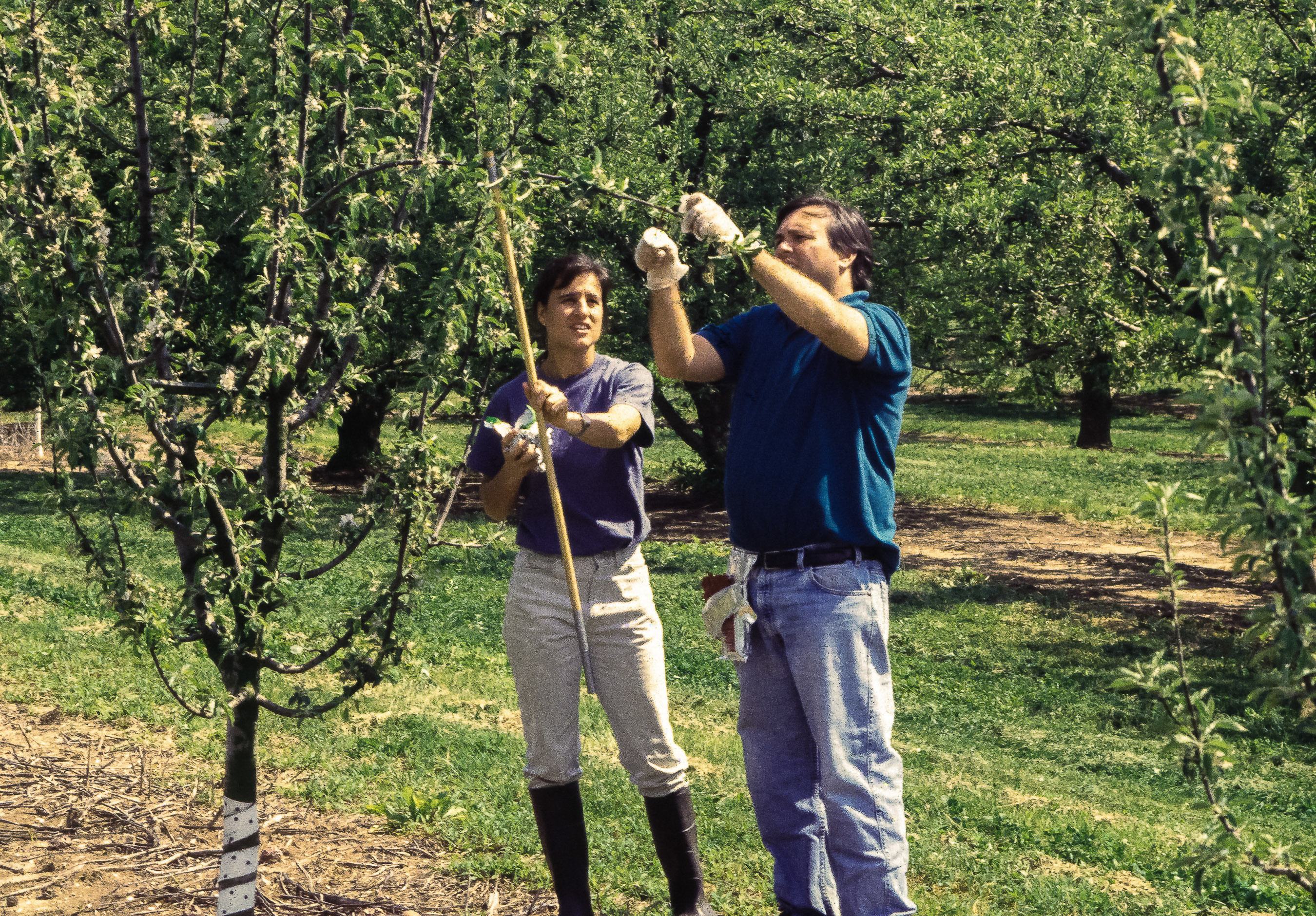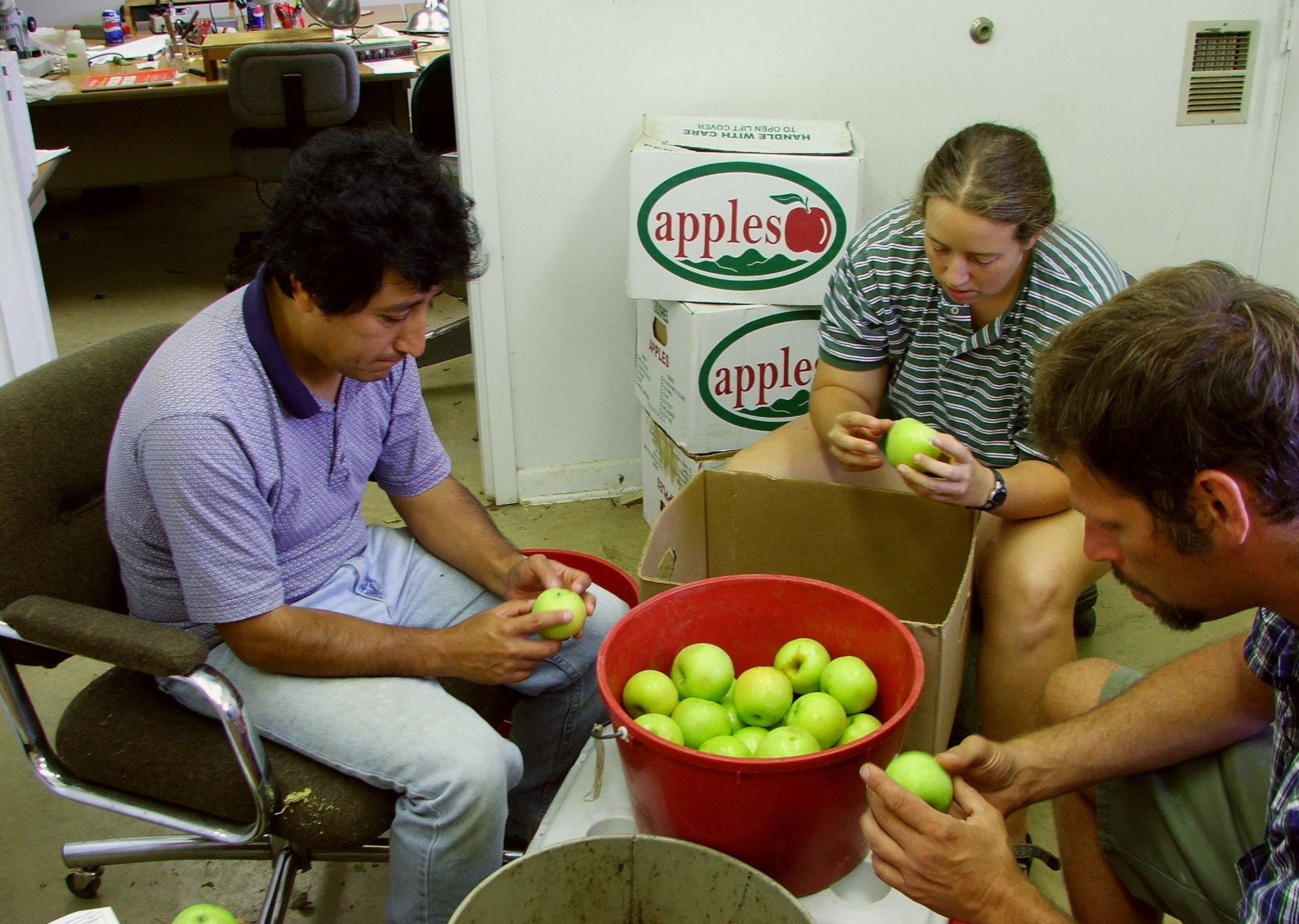 Counting codling moth eggs on apples, MHCREC, c. 2002
