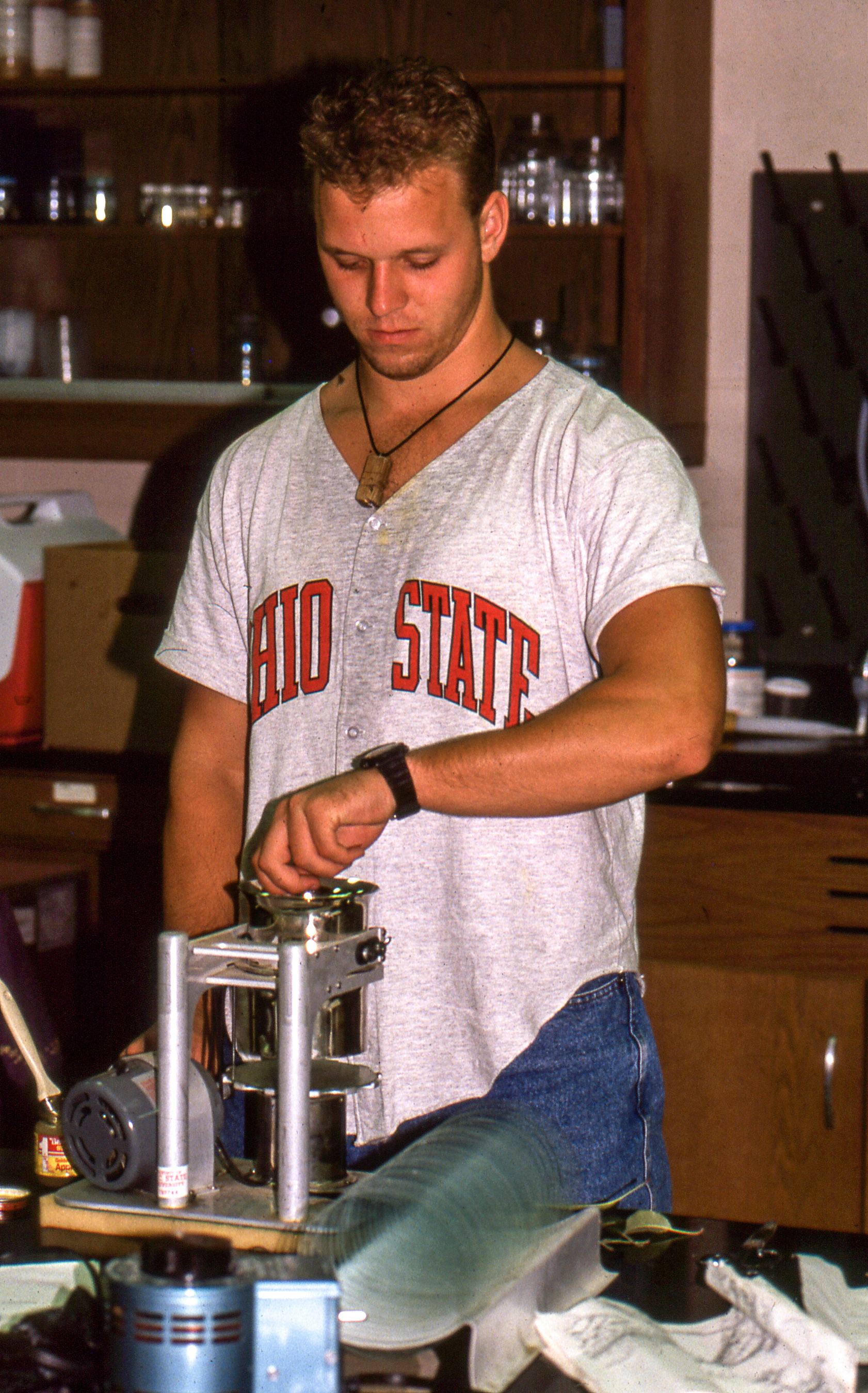 Brushing apple leaves for European red mites, MHCREC, 1992