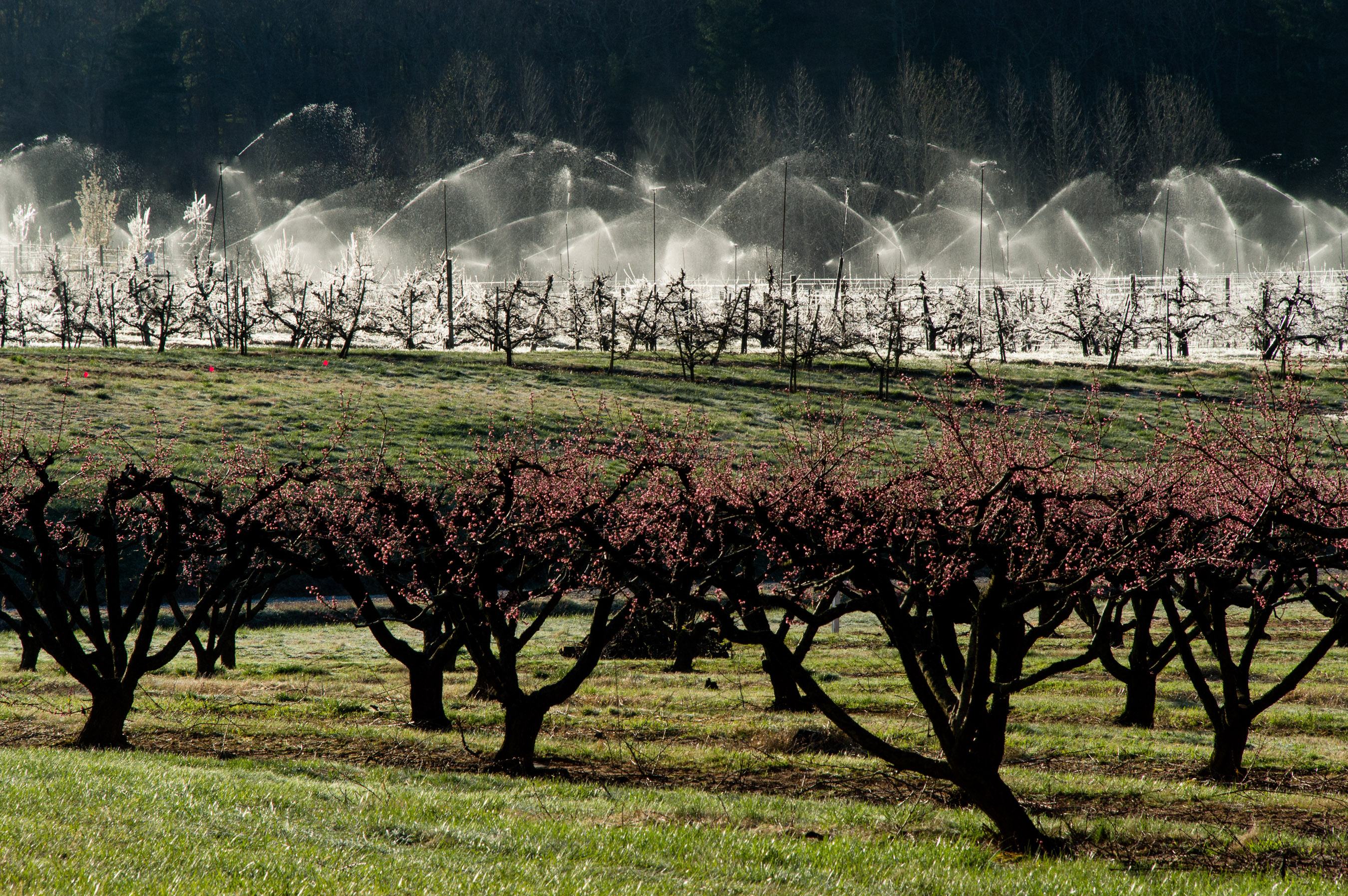 Frost protection in apples behind peach research orchard, MHCRS, 2023