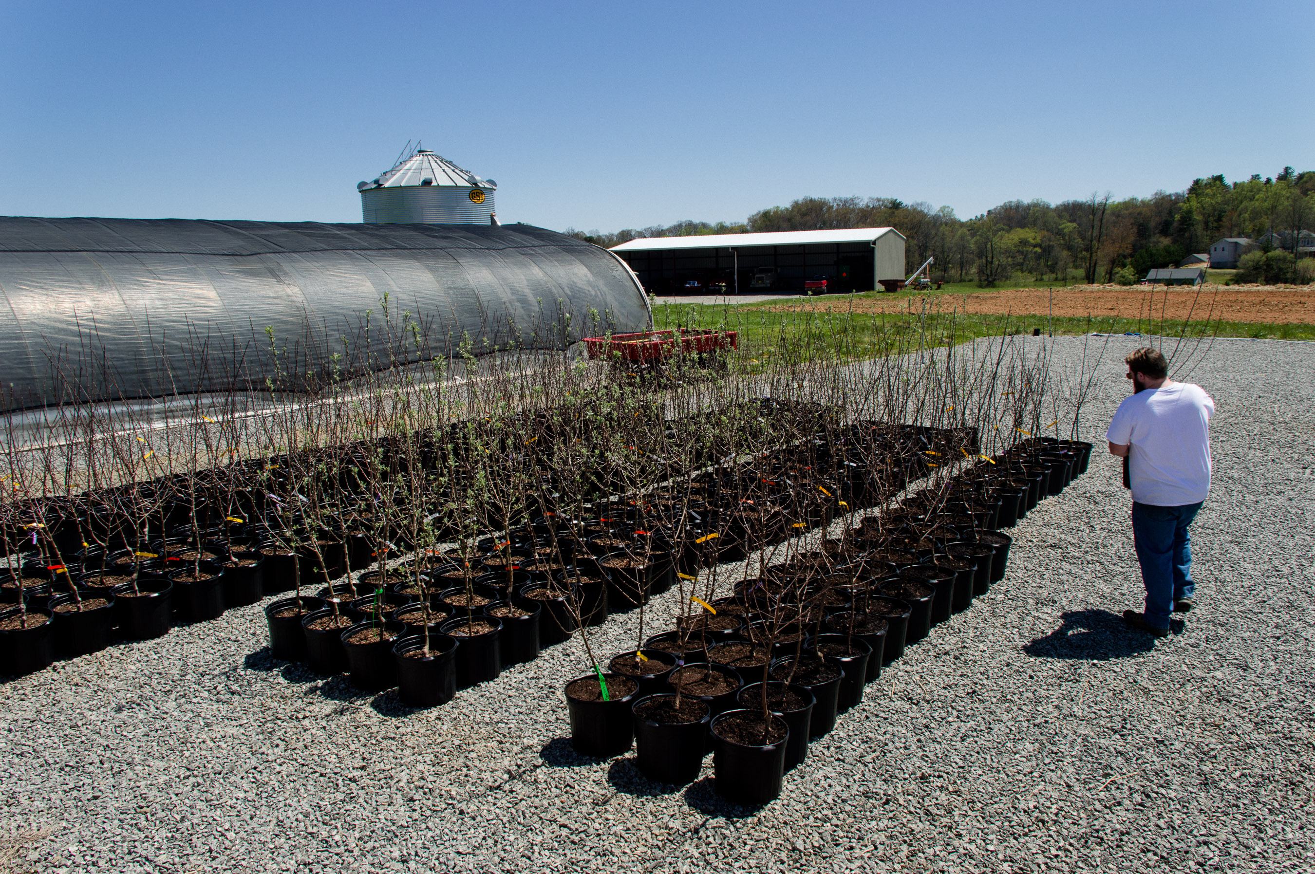 Potted trees for Rapid Apple Decline and ambrosia beetle studies, MHCRS, 2018