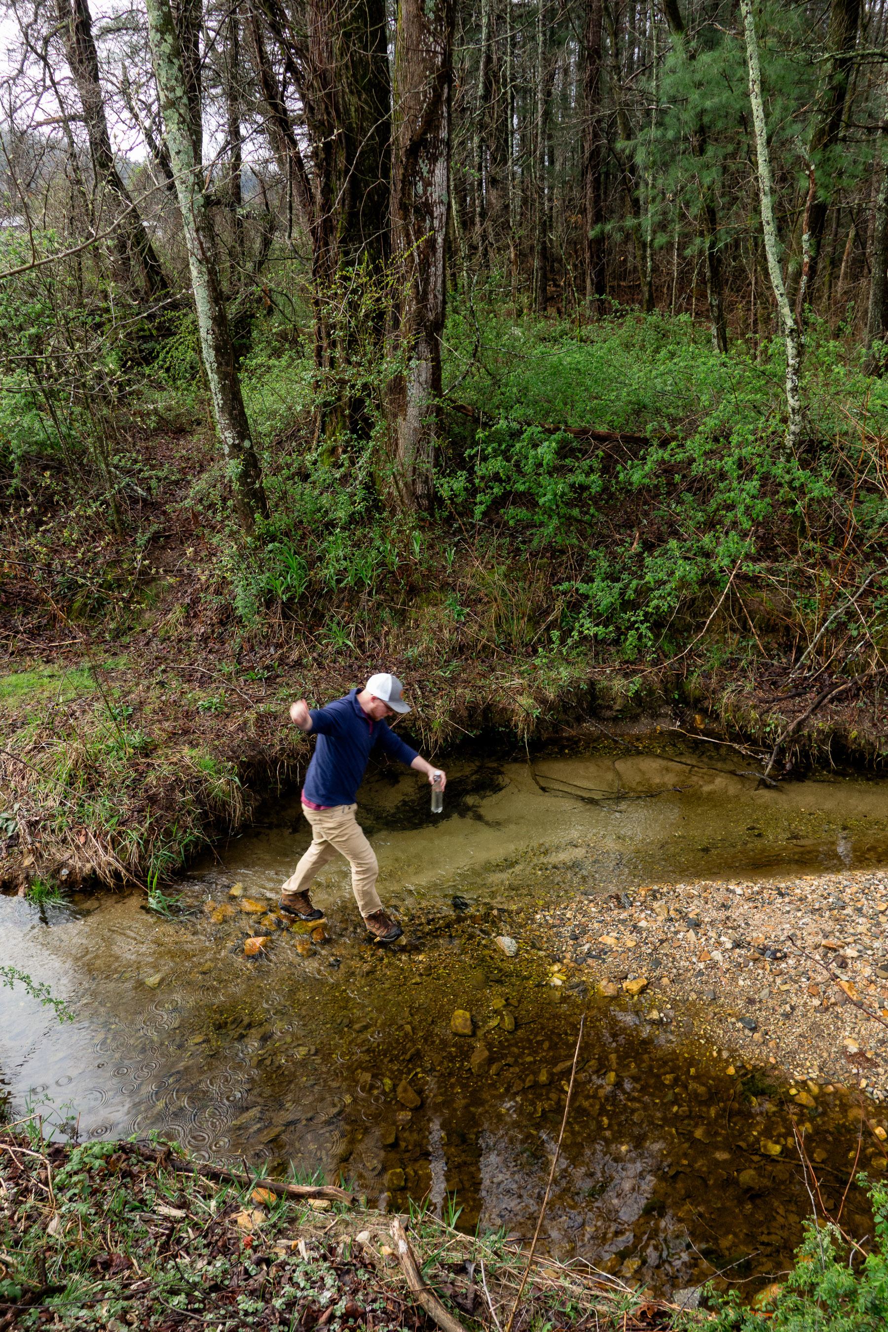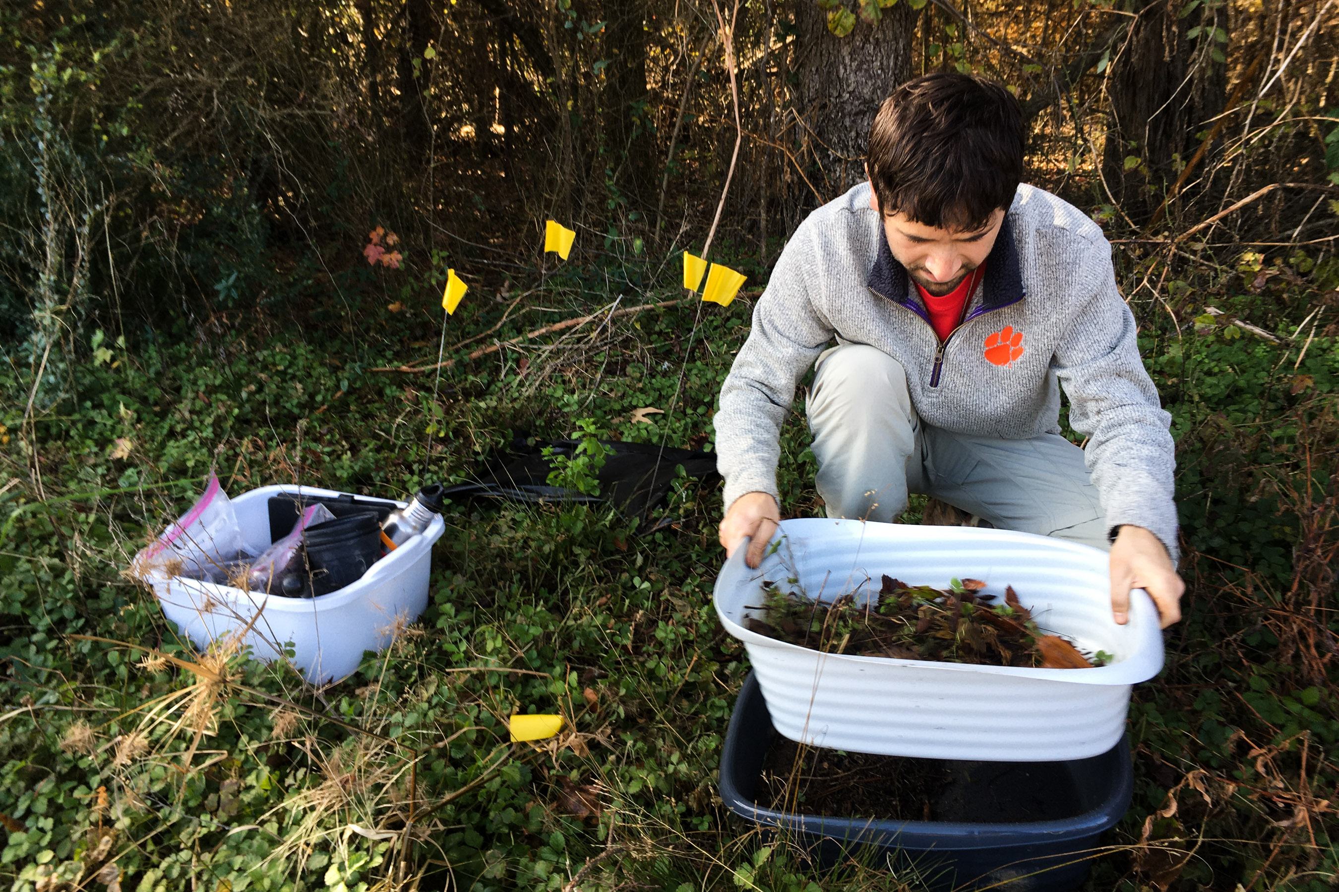 Sifting winter leaf litter for mites, Rowan County, 2019