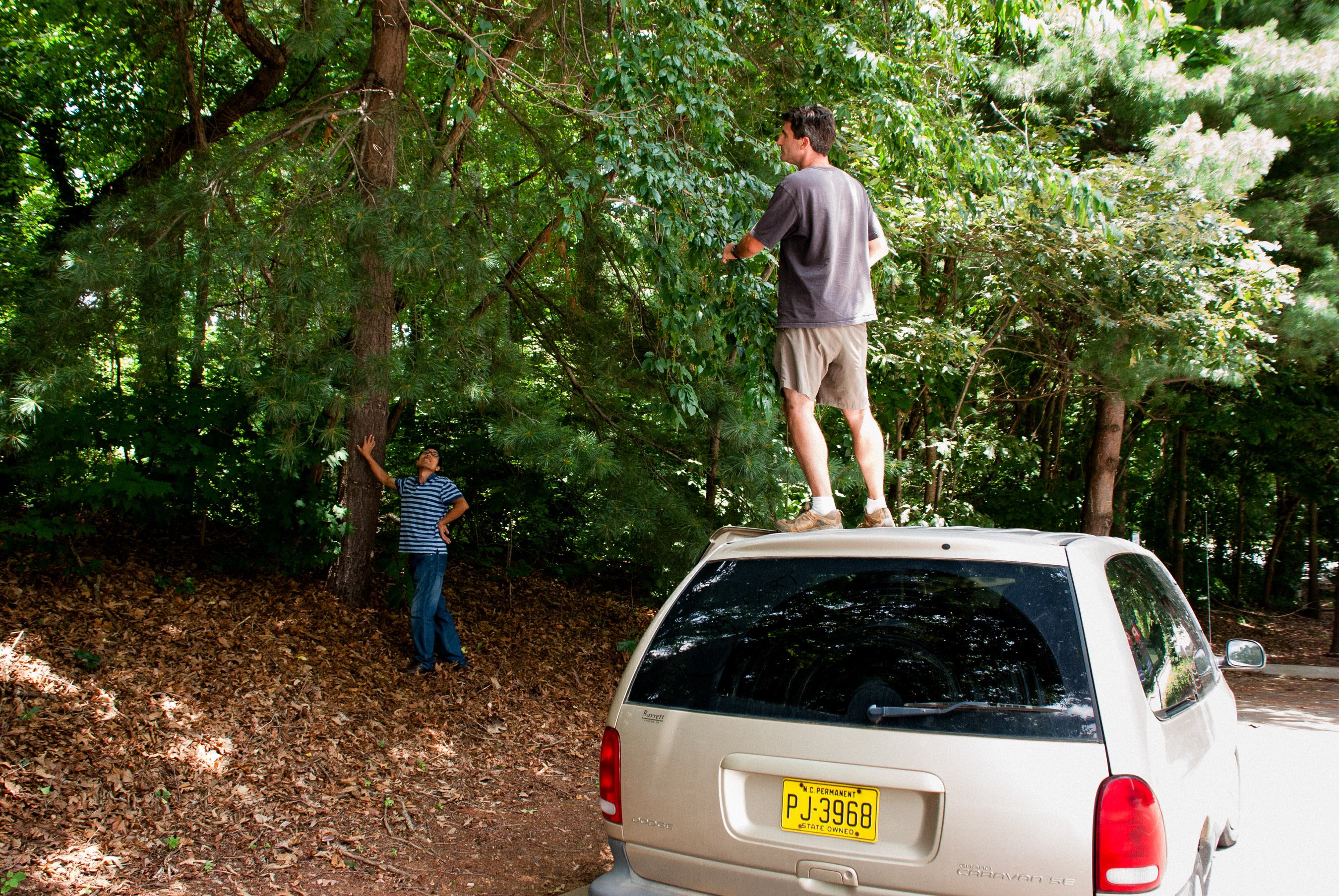 Looking for stink bugs in urban trees, UNC-Asheville, Buncombe County, 2014