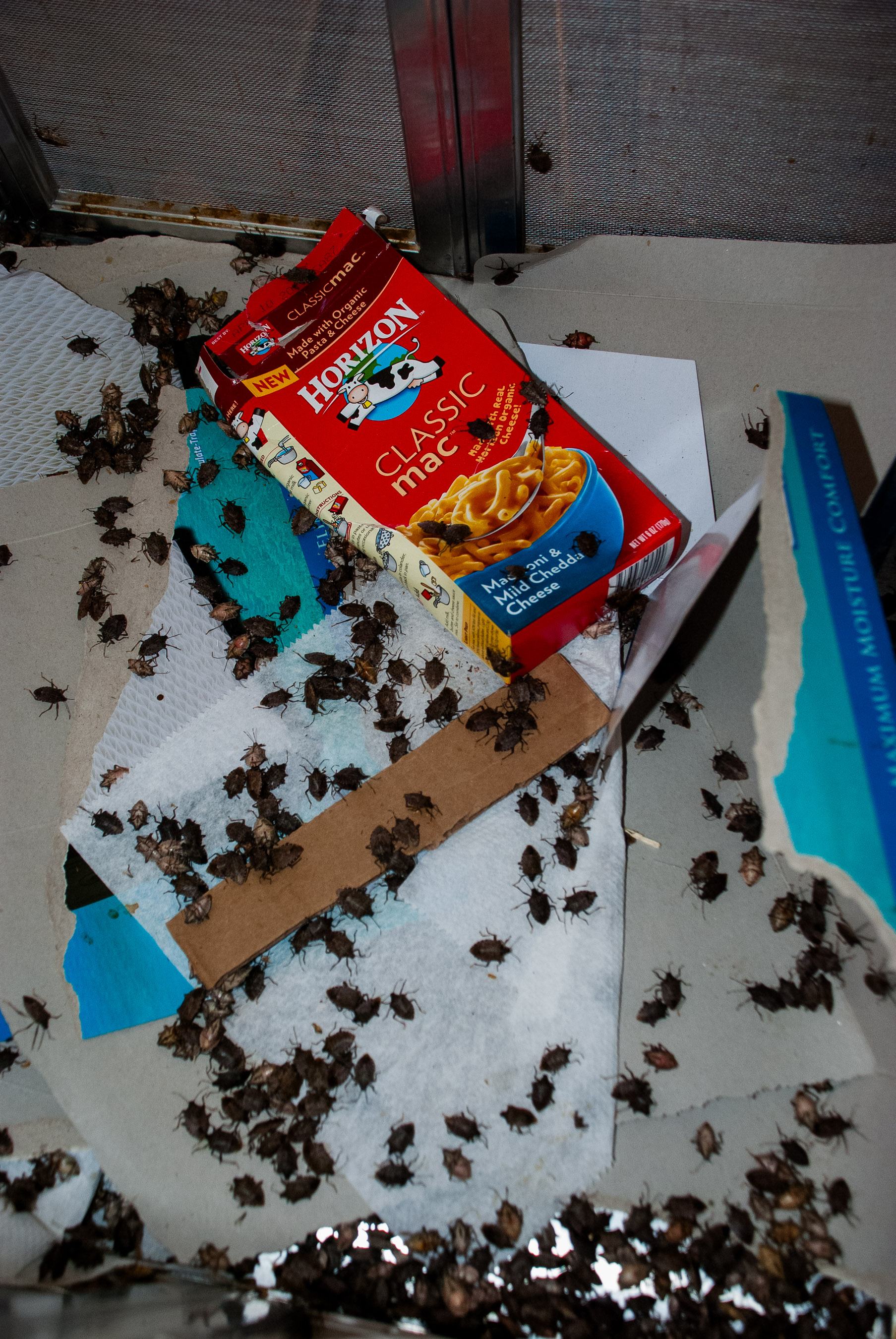 Brown marmorated stink bug collection cage, with cardboard scraps for shelter, MHCRS, 2014