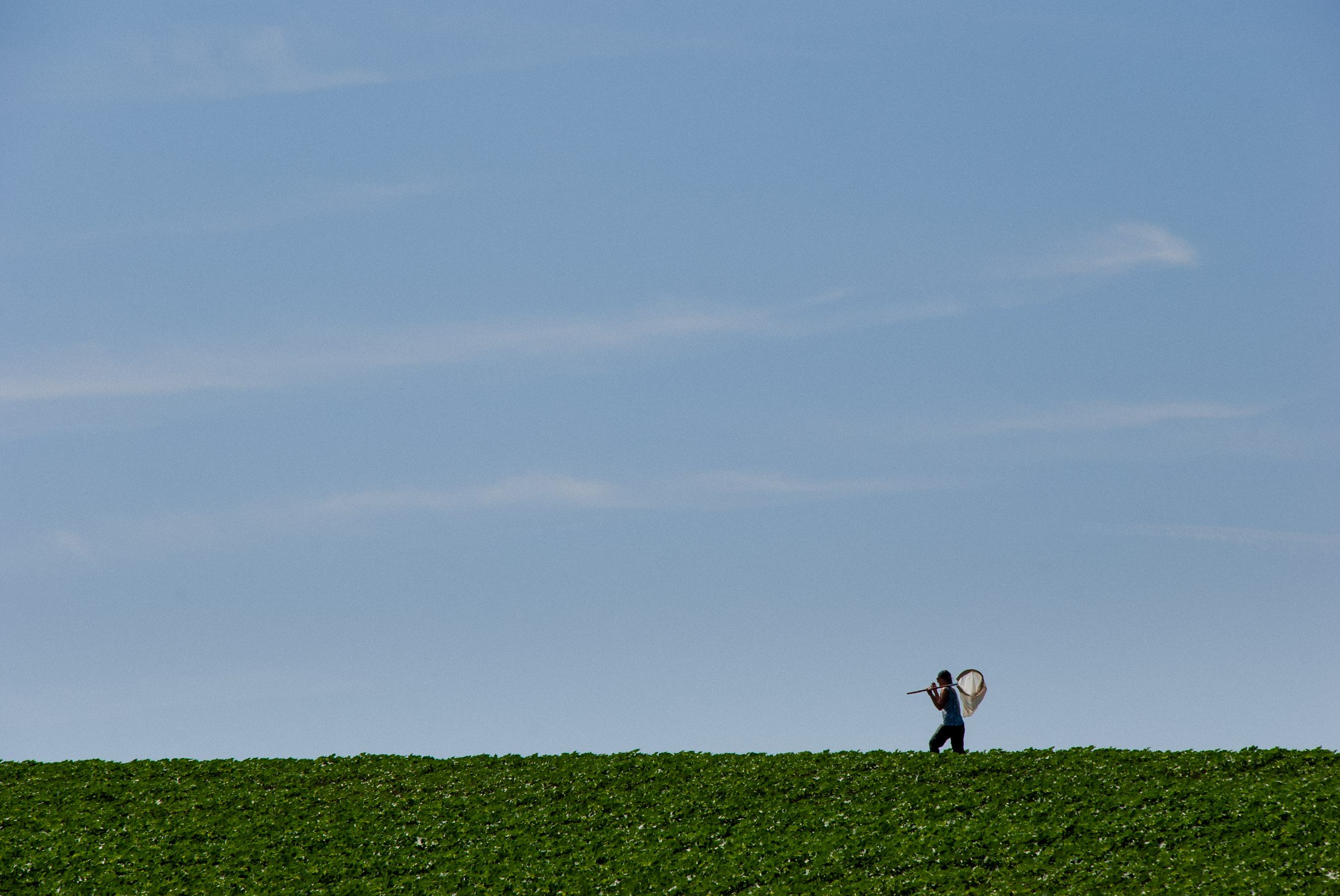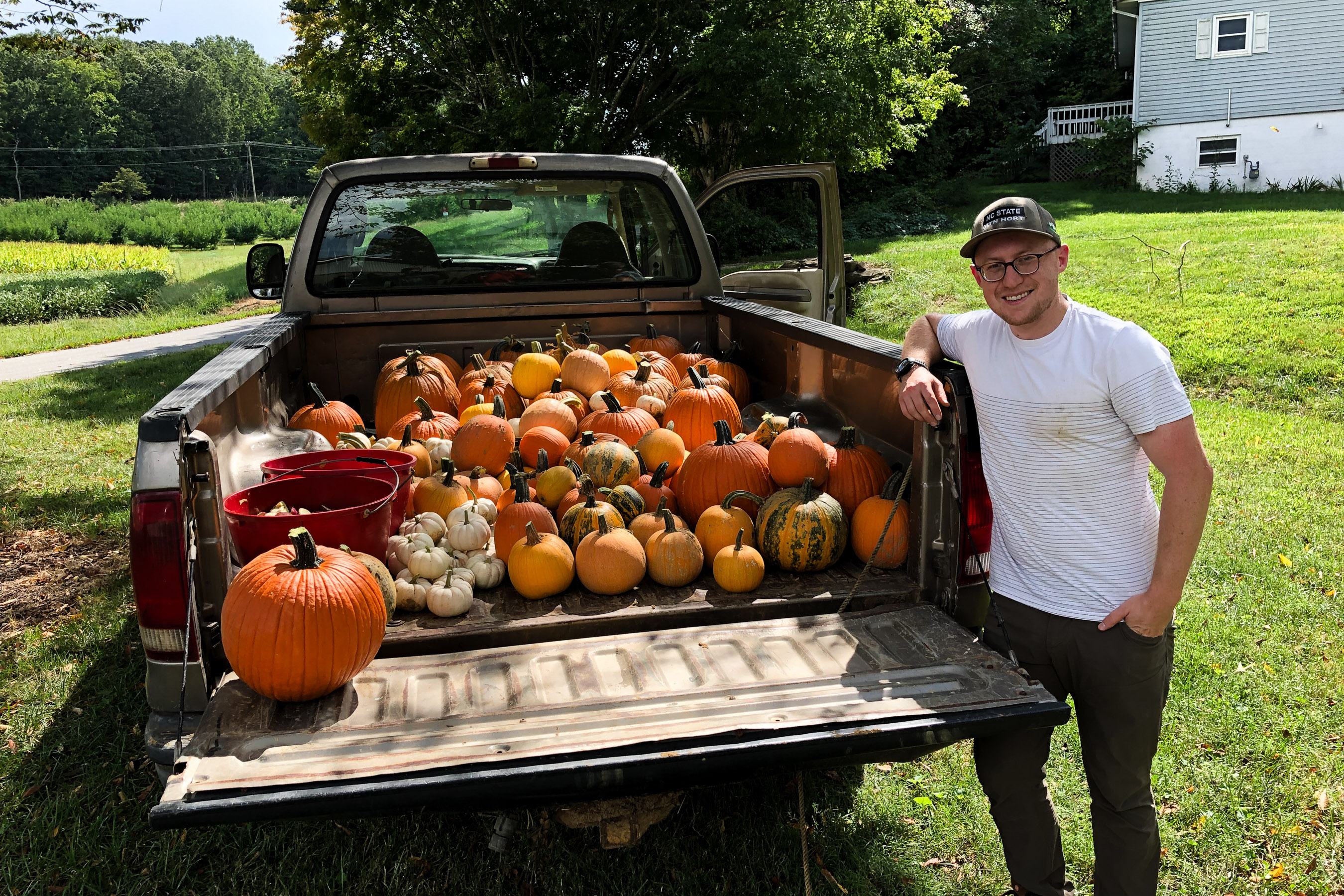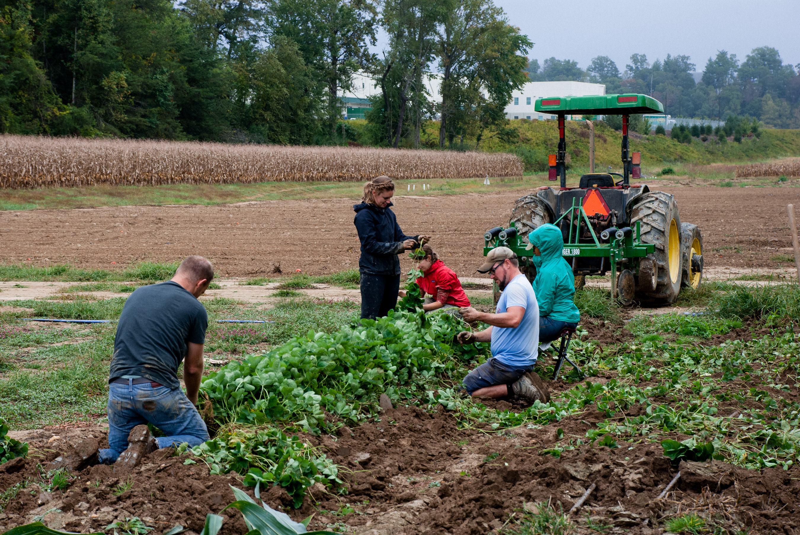 Scouting for stink bugs on an organic farm, Buncombe County, 2015