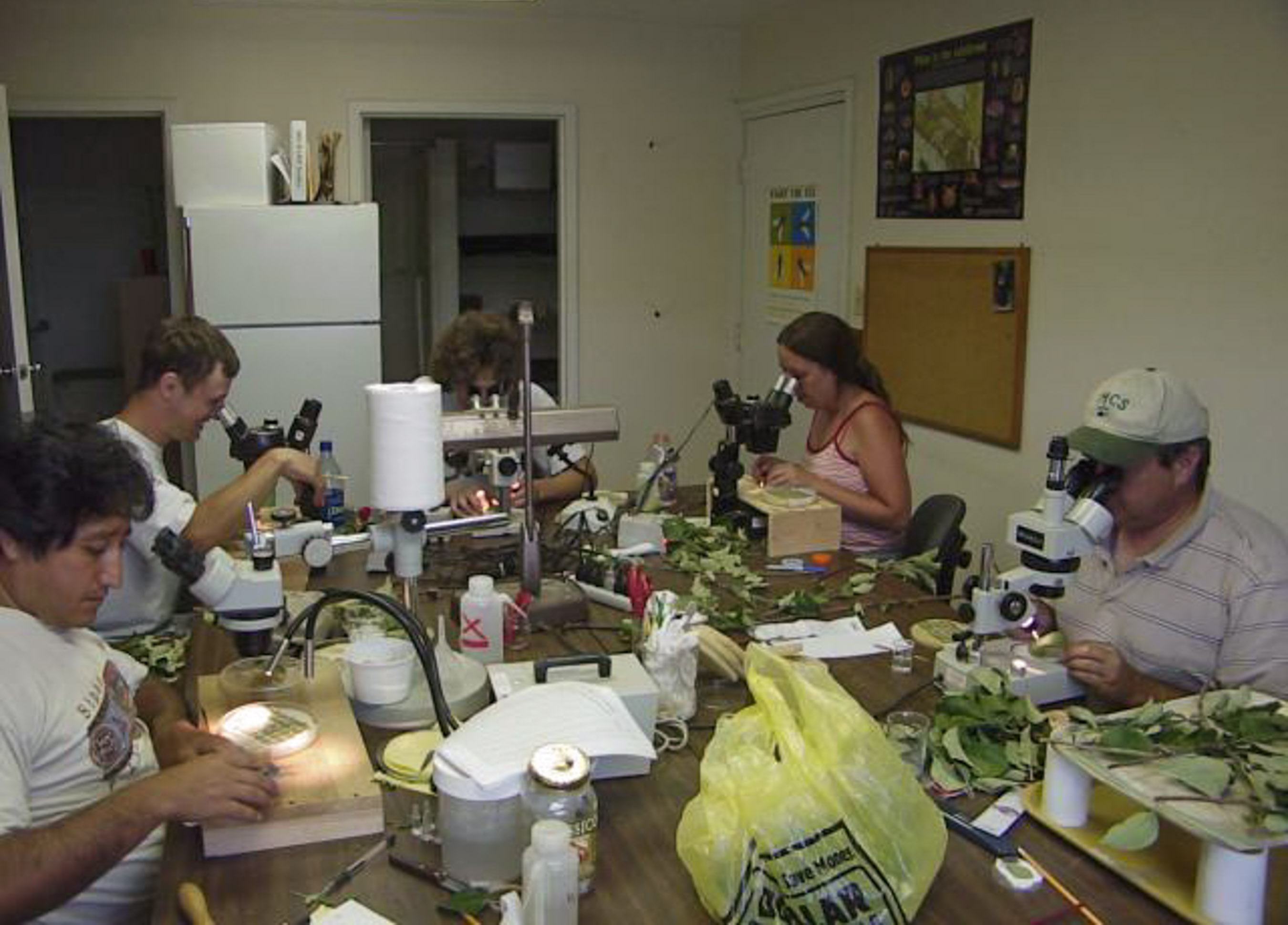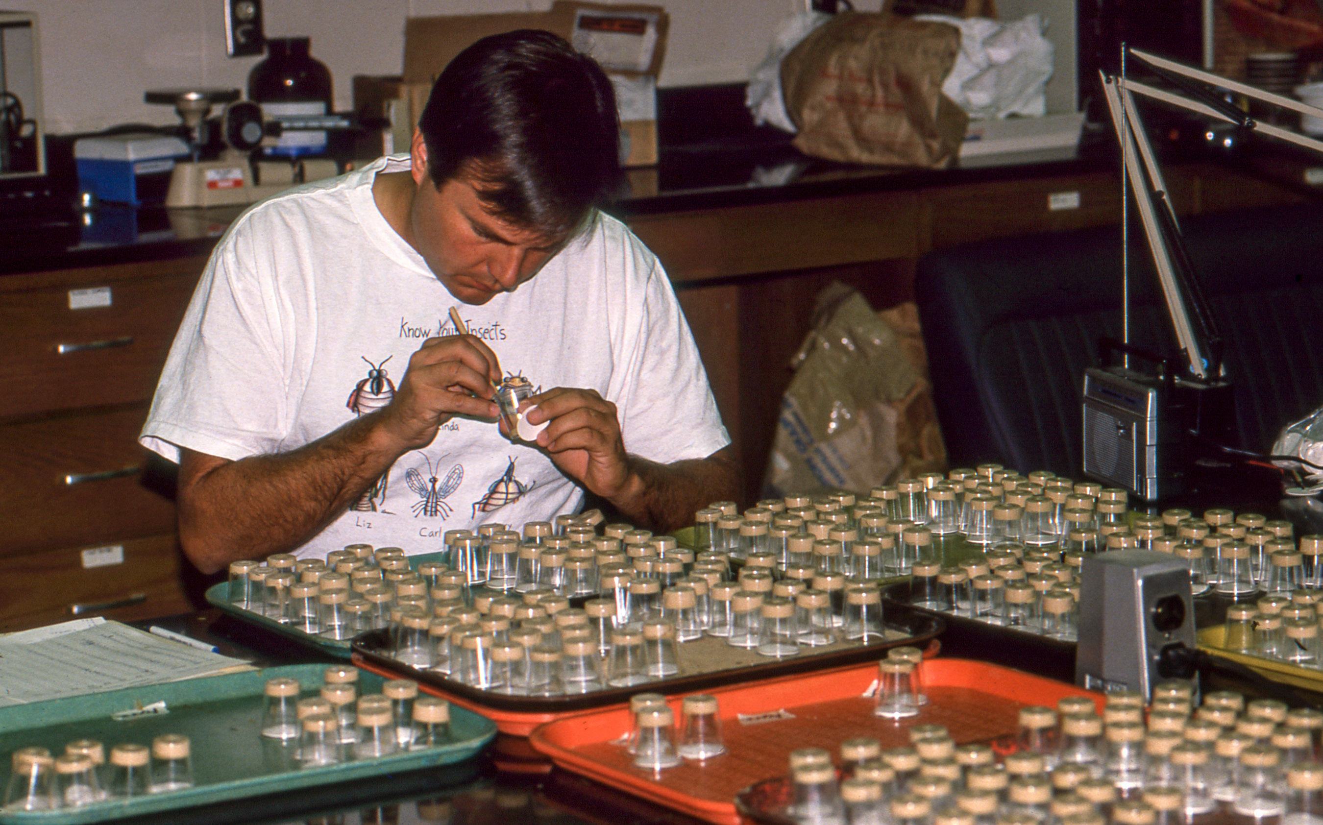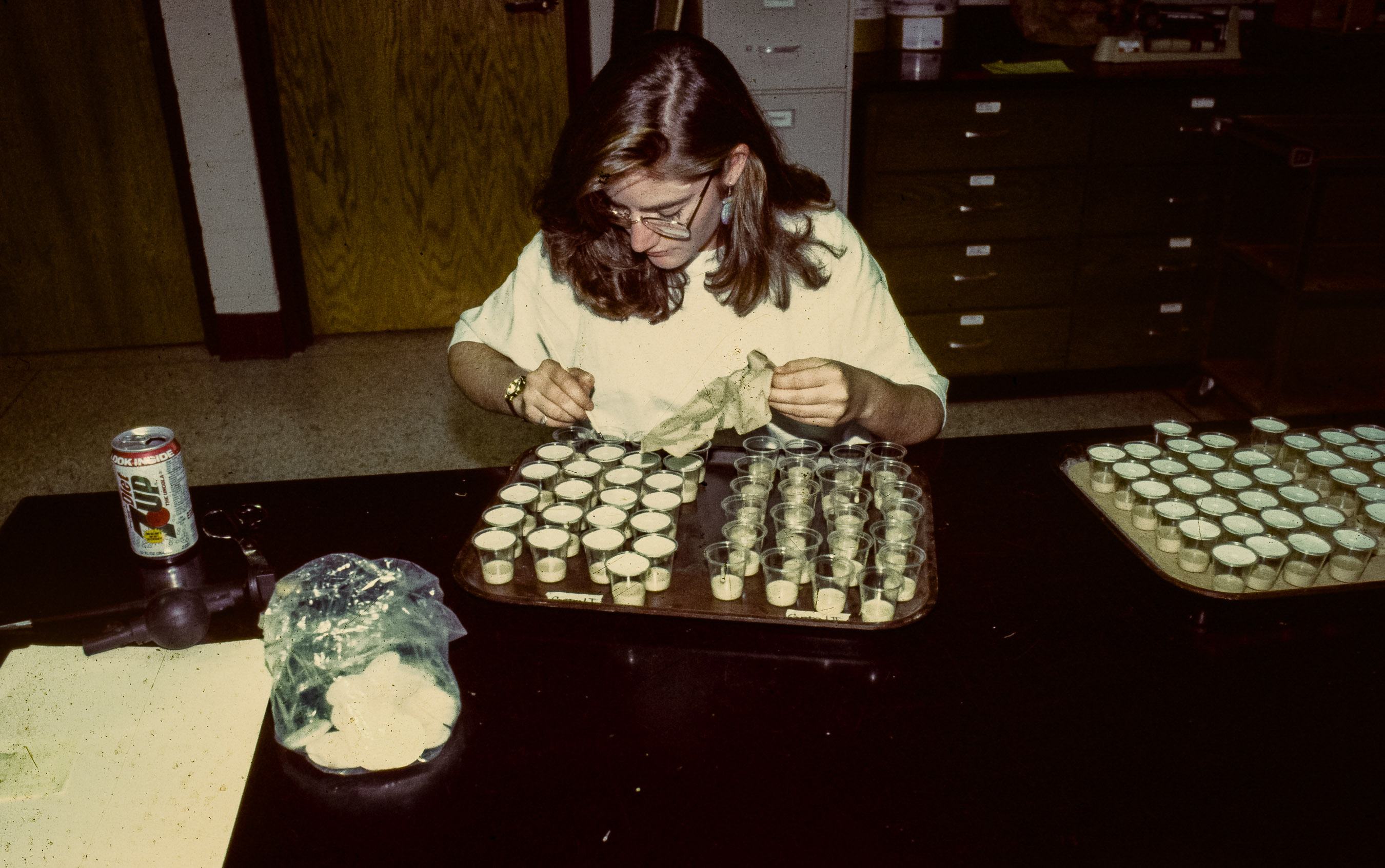 Rearing larvae on synthetic insect diet, MHCREC, c. 1991
