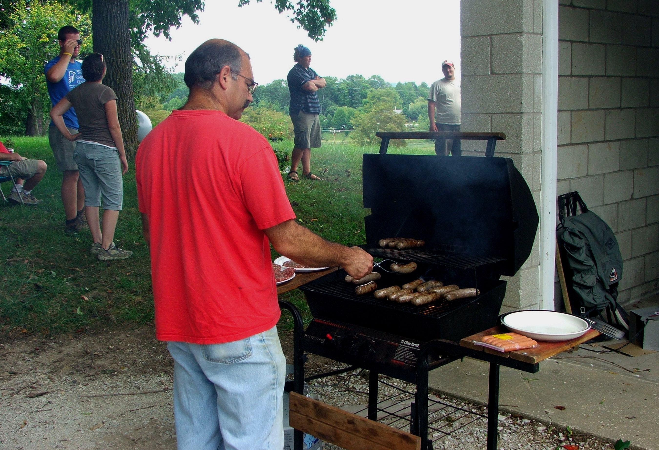 Cookout at student housing during plumbing renovation, MHCRS, 2006