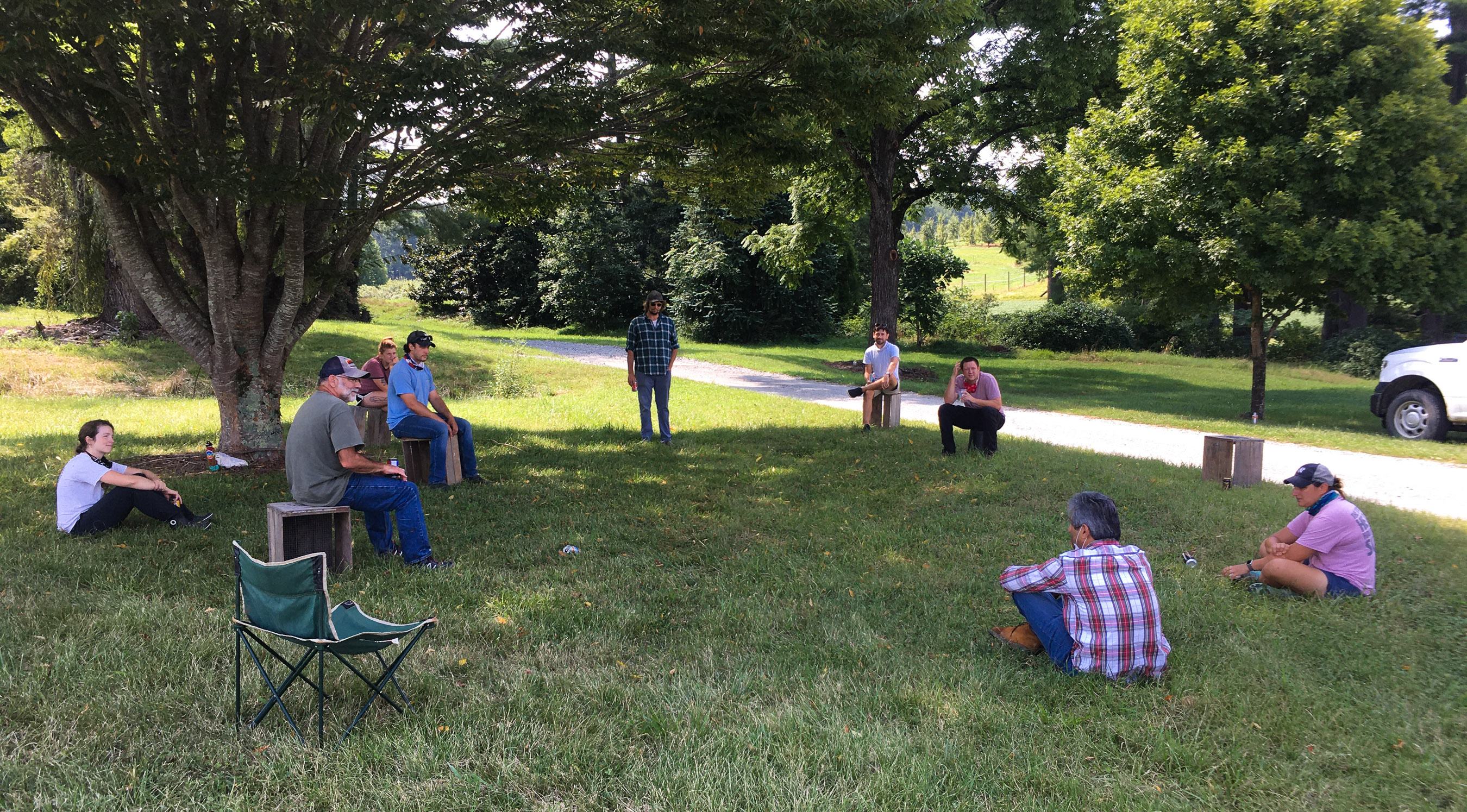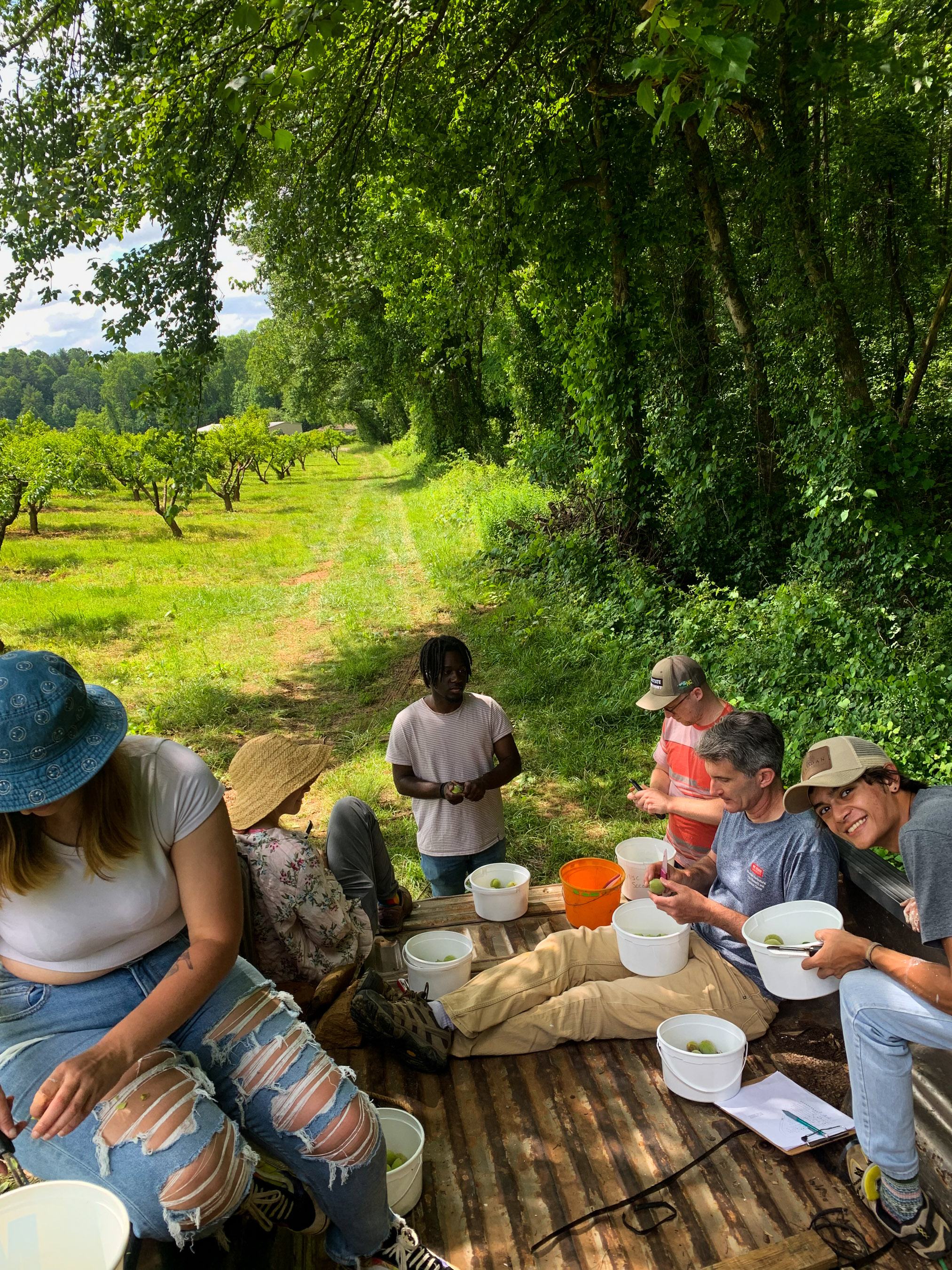 Lunch break near Altapass orchard, plum curculio project, McDowell County, 2012
