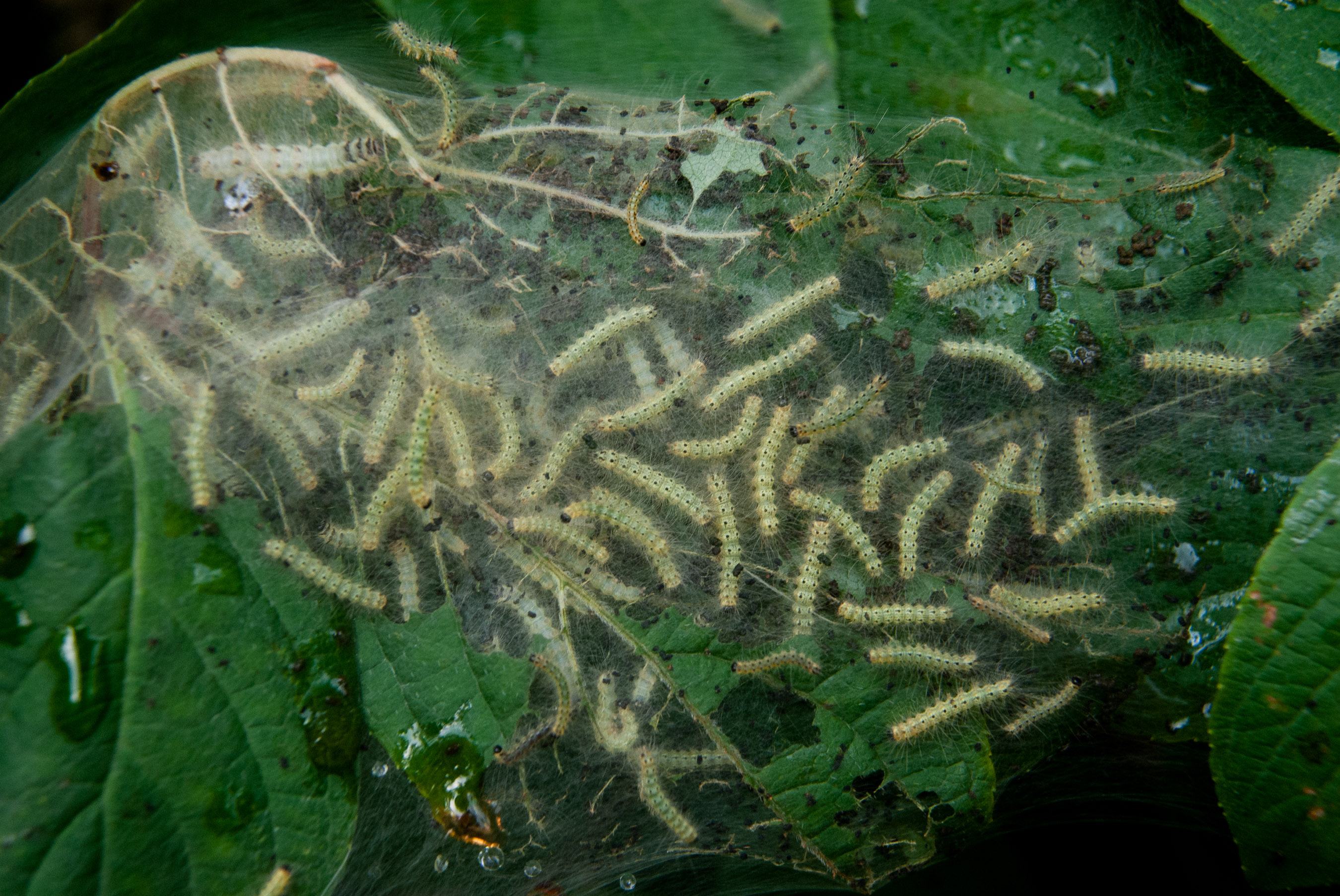 Fall webworm nest on hydrangea, Buncombe County, 2014